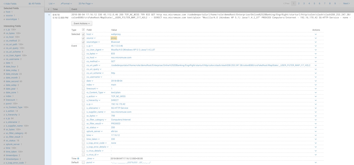 In our example, we’re collecting web proxy logs in Splunk: