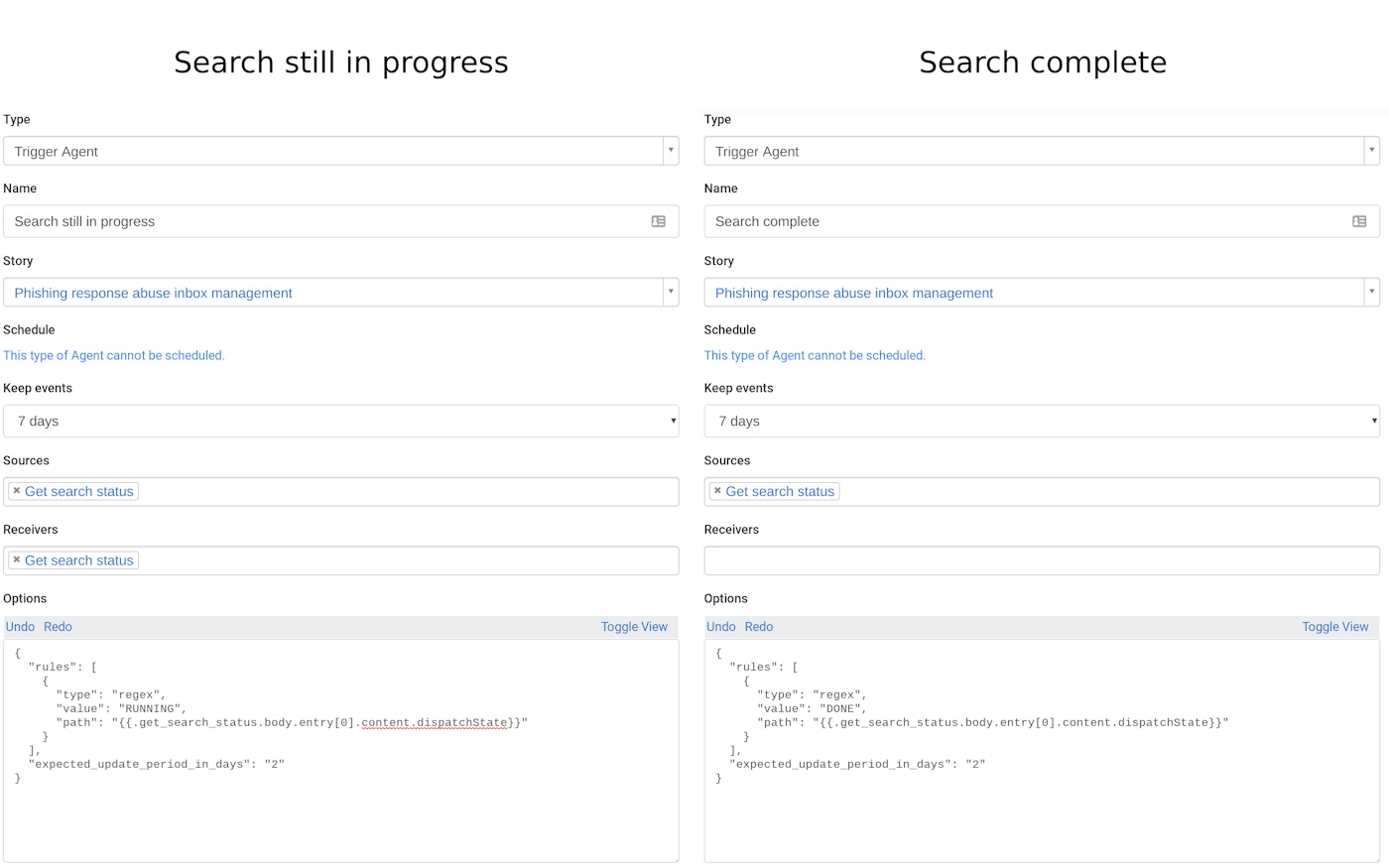 Configuration for search status trigger agents
