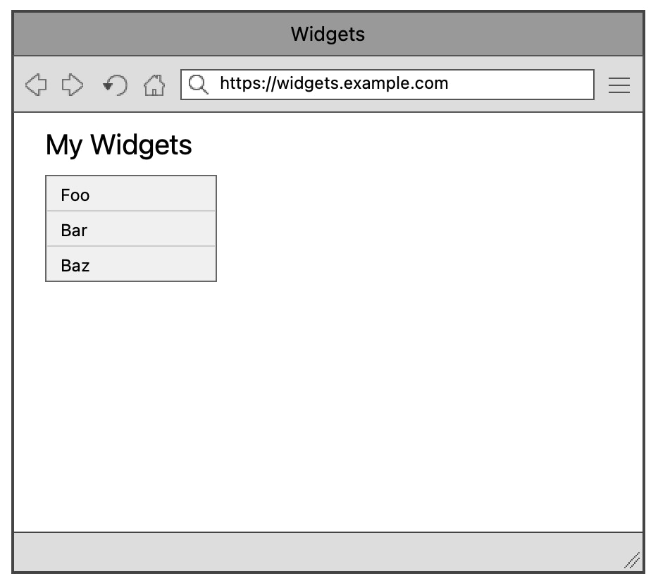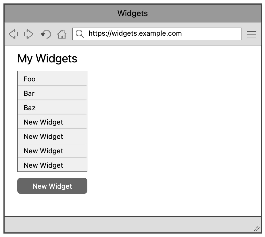 Imagine you're on a team, working on the CRUD user interface of a groundbreaking new web app for managing widgets. Here's what you have so far: