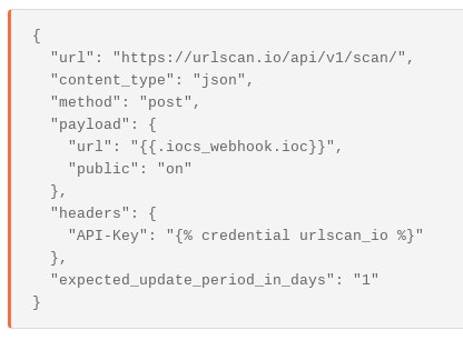 curl -X POST "https://urlscan.io/api/v1/scan/" -H "Content-Type: application/json" -H "API-Key:$apikey" -d "{"url":"$http://badsite.com", "public":"on"}"Similarly, the sample Action configuration for submitting to urlscan.io is straight forward: