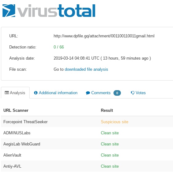 Submitting to VirusTotal allows over 60 different anti-virus companies to scan the page.