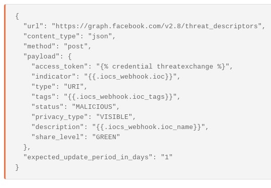 Unsurprisingly, submitting indicators to threat exchange is easy using the Facebook Graph API: