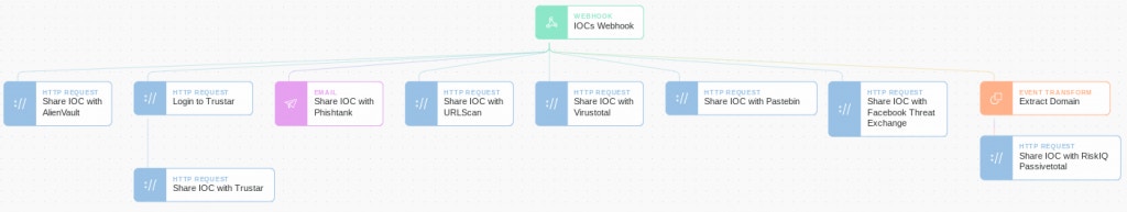 In this blog we discuss the process of sharing individual indicators of compromise (IOCs) using tines.io. With Tines it’s easy to share IOCs to common Threat Intelligence platforms like AlienVault, Trustar, Facebook Threat Exchange and PassiveTotal as well as automating sharing IOCs on Pastebin and submitting content to VirusTotal, urlscan.io and Phishtank.
